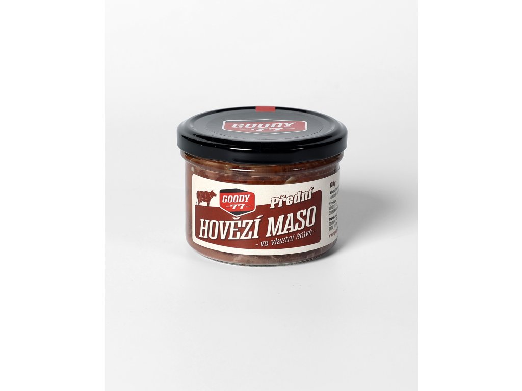 Beef chuck meat in its own juice. Made from fresh meat sourced exclusively from local farms in the heart of the Šumava region. Free from nitrite curing salts and preservatives.