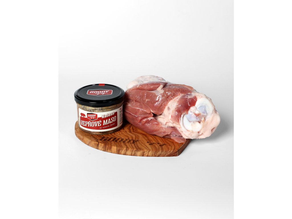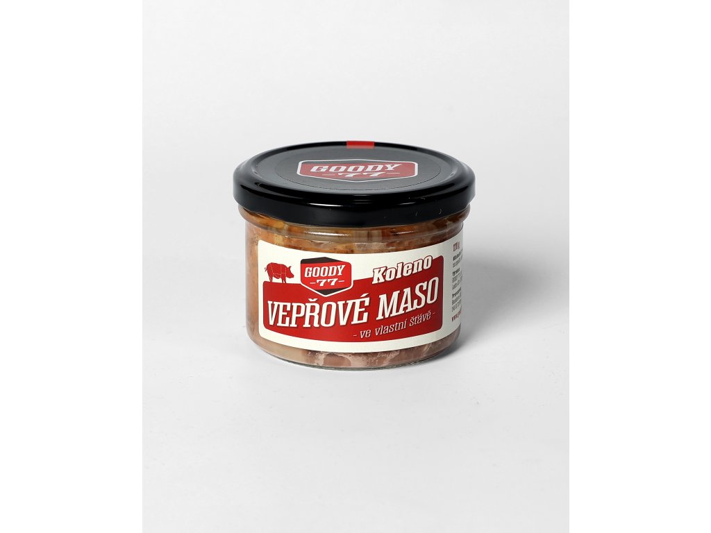Pork knuckle meat in its own juice. Made from fresh meat sourced exclusively from local farms in the heart of the Šumava region. Free from nitrite curing salts and preservatives
